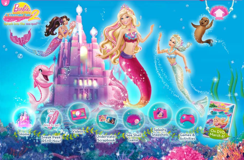 Estava entrando no site da Barbie.com e percebi que a página da Barbie em Vida de sereia 2 mudou! Veja o print abaixo: